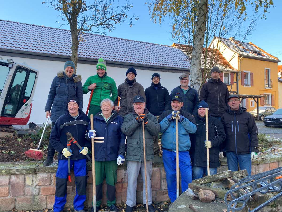 Nach monatelangen Planungen und Antragstellungen durch unsere Dorfplanerin Frau Engelhardt in Zusammenarbeit mit dem Gemeinderat, wurde nun der erste Schritt zur Neugestaltung des Brunnenplatzes an der Martin-Luther Kirche gemacht. Der ehrenamtliche Arbeitseinsatz engagierter Bürger im November (auf dem Foto fehlen einige Personen) gilt als sogenannter Maßnahmenbeginn. Ein herzliches Dankeschön an alle fleißigen und hochmotovierten Helfer, denn nur gemeinsam kann man Vieles erreichen. Den Plan für die Neugestaltung des Platzes finden Sie auf der Homepage www.feilbingert.de/Gemeinde/Bü