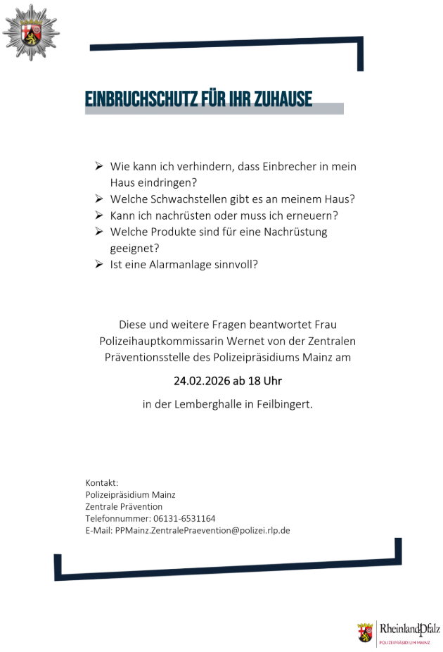 Informationsveranstaltung mit der Polizei zum Thema „Einbruchschutz“